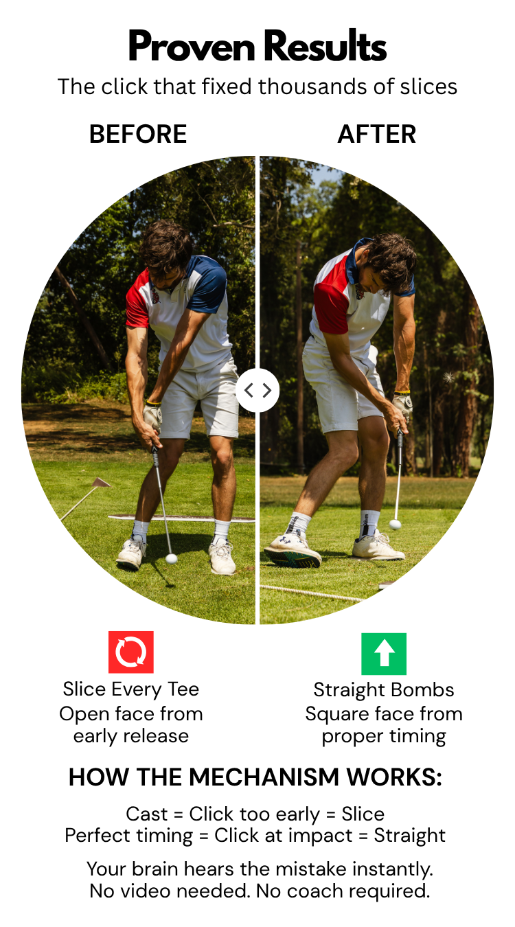 - Click too early in your downswing = You're casting (losing power and causing slices)