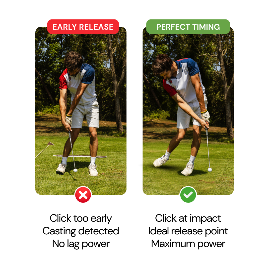 when your swing hits max speed. - Trains Your Lag and Release Timing – Hear the click too early? You’re releasing